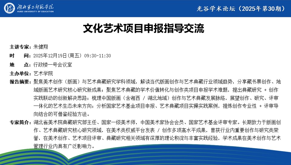 【光谷学术论坛预告】文化艺术项目申报指导交流