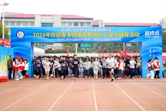 本网讯(新闻中心记者 夏锐 通讯员 向琴英)3月19日下午,伴随清脆的发令枪声,2026年校园春季健康跑暨教职工徒步健身活动正式起跑。千余名师生穿梭于校园南北,用脚步丈量春日美景。全体在校校领导出席开赛仪式并鸣枪发令,副校长张红梅致辞。