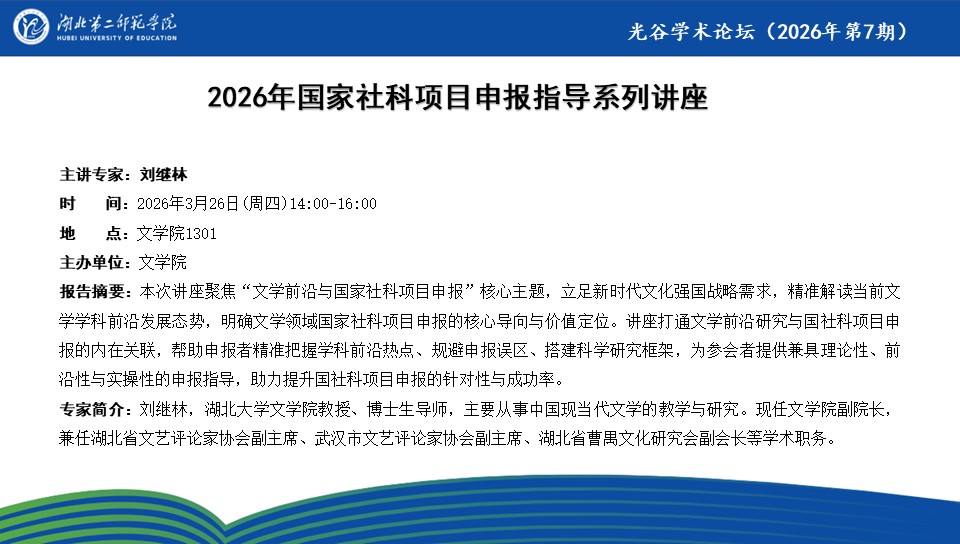 【光谷学术论坛预告】2026年国家社科项目申报指导系列讲座