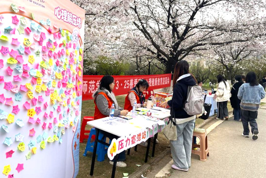 本网讯(通讯员 张文怡)3月25日,我校2026年“3·25善爱我”心理健康宣传周系列活动之心理游园会在樱花园拉开帷幕。本次活动由学生工作部心理健康教育与咨询中心主办,教育科学学院、物理与机电工程学院、新闻与传播学院、经济与管理学院及艺术学院联合承办,吸引了千余名师生踊跃参与。