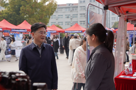 本网讯(通讯员 张震)3月27日,2026年“湖北百校联动”高校毕业生供需见面会暨湖北第二师范学院专场校园招聘会在图书馆前广场举行。省高校毕业生就业指导中心主任张丽萍,校党委书记张文学、校长郑军及其他在校校领导来到现场指导。