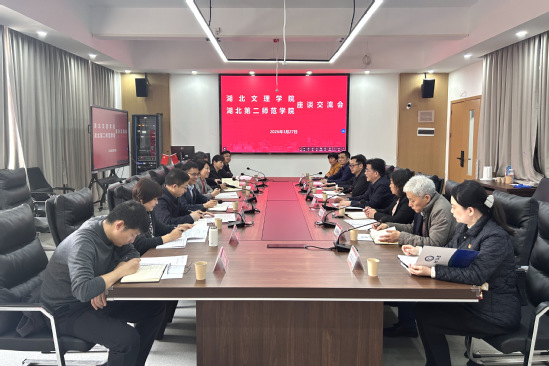 本网讯(通讯员 欧阳杰)3月27日下午,湖北文理学院党委书记吴超仲、副校长汪云一行来校调研交流,双方在实验楼S6205会议室举行座谈会。校党委书记张文学、副校长张红梅出席,副校长田恒平主持相关活动。