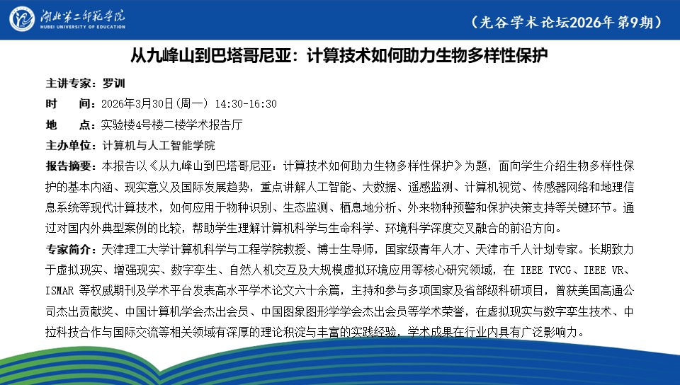【光谷学术论坛预告】从九峰山到巴塔哥尼亚:计算技术如何助力生物多样性保护