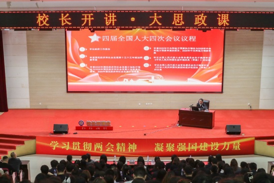 本网讯(通讯员 骆夏君)4月16日下午,“校长开讲”·大思政课在图书馆2号报告厅举行。住鄂全国政协委员、校长郑军教授以“学习贯彻两会精神 凝聚强国建设力量”为题,为青年学子专题授课。副校长雷勇,各二级学院党委(党总支)副书记、学工办主任、全体辅导员及学生代表参加学习。副校长吕辉主持活动。