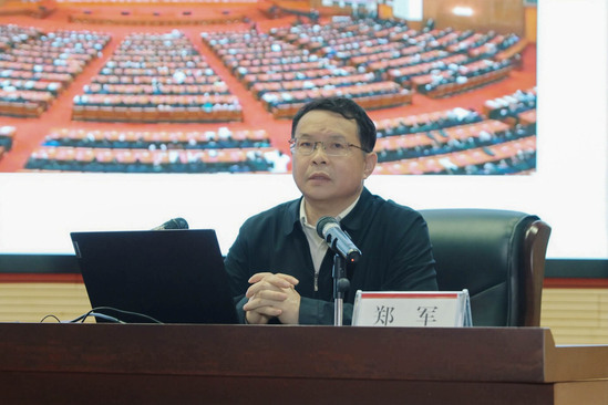 郑军结合自身履职经历和参会感受,从充分认识两会意义、准确把握2026年“两会”精神、深刻理解国家发展与个人成长的关系等方面展开讲授。他解读了政府工作报告核心内容,系统阐述“十五五”时期经济社会发展主要目标、重大战略任务及宏观政策取向,重点围绕2026年政府工作任务,从经济发展、科技创新、民生保障、教育改革等方面深入分析年度工作部署与重点方向。郑军强调,2026年是“十五五”开局之年,做好全年工作意义重大,青年学子要准确把握国家发展目标任务,将两会精神融入学习工作实践。
